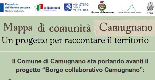 In questo contesto, nell’ambito della realizzazione di un “territorio collaborativo”, la mappa di comunità diventa una parte culturale importante perché dà la possibilità agli abitanti di definire l’identità del proprio territorio, di raccontare ciò che il territorio è stato, è e potrebbe essere in futuro. Gli abitanti, grazie alla facilitazione dello staff di Yoda e alla preziosa collaborazione delle realtà locali, avranno l’opportunità di raccontare la natura, la storia, il lavoro, gli edifici, le persone, le feste, le storie e gli episodi importanti per la comunità e per i singoli: un patchwork di immagini, foto e testi scritti direttamente dagli abitanti di Camugnano o tratti dalle loro interviste. Il tutto sarà rappresentato da artisti e grafici scelti sempre dalla comunità locale attraverso un contest.