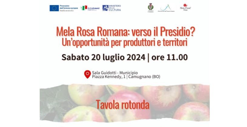 Il prossimo 20 luglio alle ore 11.00 Slow Food Bologna organizzerà un incontro in comune a Camugnano presso la sala Guidotti con i produttori della Mela Rosa Romana per esplorare la possibilità di realizzare un presidio.