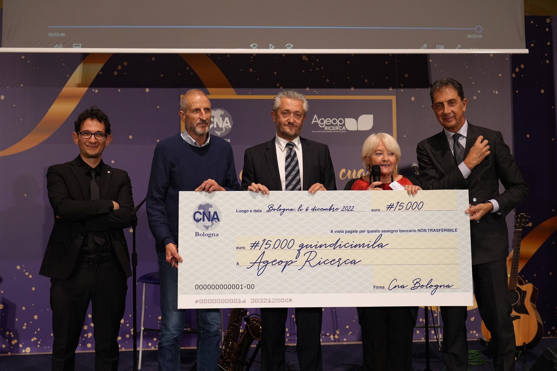 Ha battuto 15.000 volte il cuore di Cna e delle sue imprese ieri sera in Sala Borsa. La “Cena col Cuore”, cena solidale organizzata da Cna a sostegno dei progetti di accoglienza di Ageop Ricerca, ha raccolto 15.000 euro, che sono stati consegnati sotto forma di assegno simbolico alla Presidente di Ageop Ricerca Carla Tiengo.