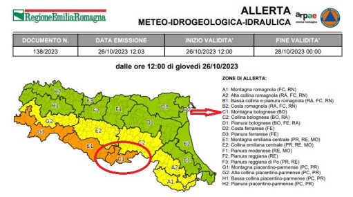 Appennino Bolognese, Allerta Meteo dalle ore 12.00 del 26 ottobre