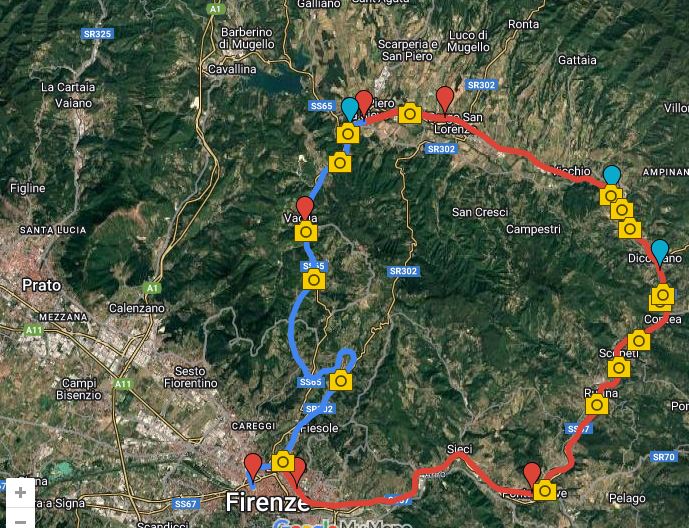 La partenza è fissata alle ore 9:31 di mattina. Giunti a San Piero a Sieve, intorno alle 12:30, il treno chiude il lungo anello rientrando verso Firenze SMN via Vaglia percorrendo la linea storica “faentina”. L’Arrivo a Firenze SMN è previsto alle ore 17:35