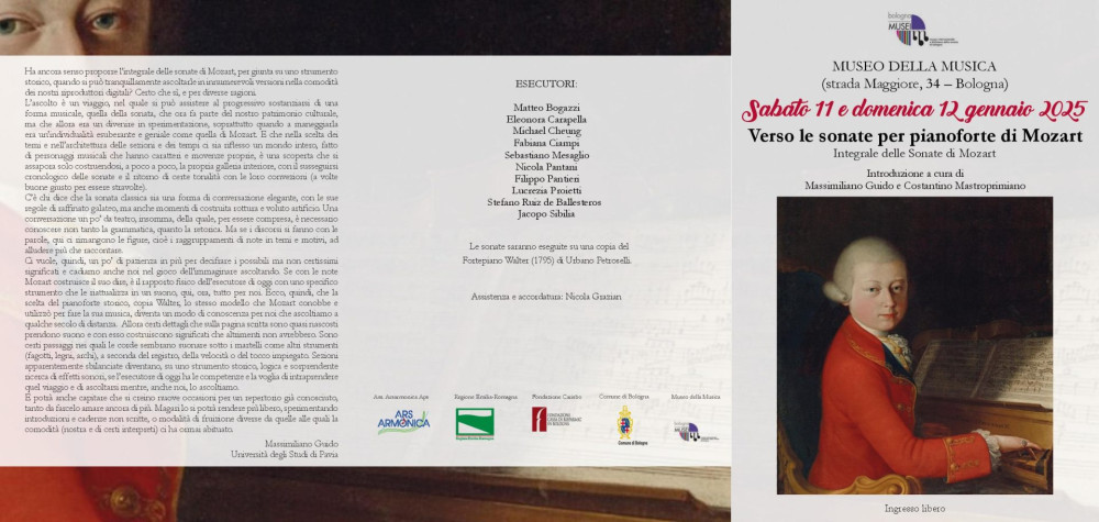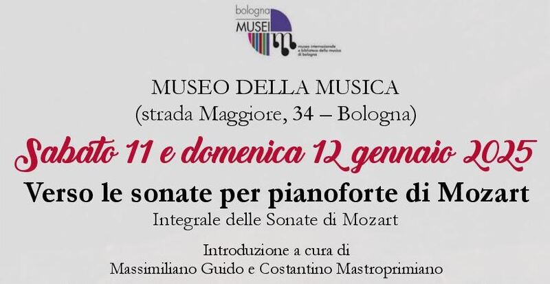 Il Museo della Musica di Bologna dà il via a Wunderkammer 2025, la sua nuova stagione concertistica, con un importante evento dedicato alle sonate per pianoforte di Wolfgang Amadeus Mozart. Nei giorni 11 e 12 gennaio 2025 (divisi in 4 sessioni/ore 10.30-13 e 15.30.18) si terrà “Verso le sonate per pianoforte di Mozart”, una rassegna già collaudata in diverse città italiane che presenta l’integrale delle sonate del celebre compositore.