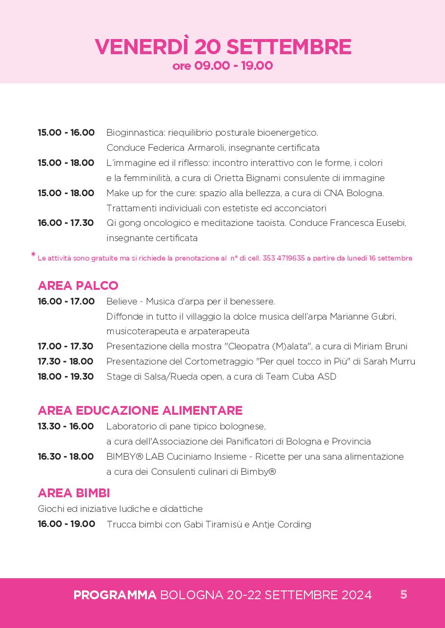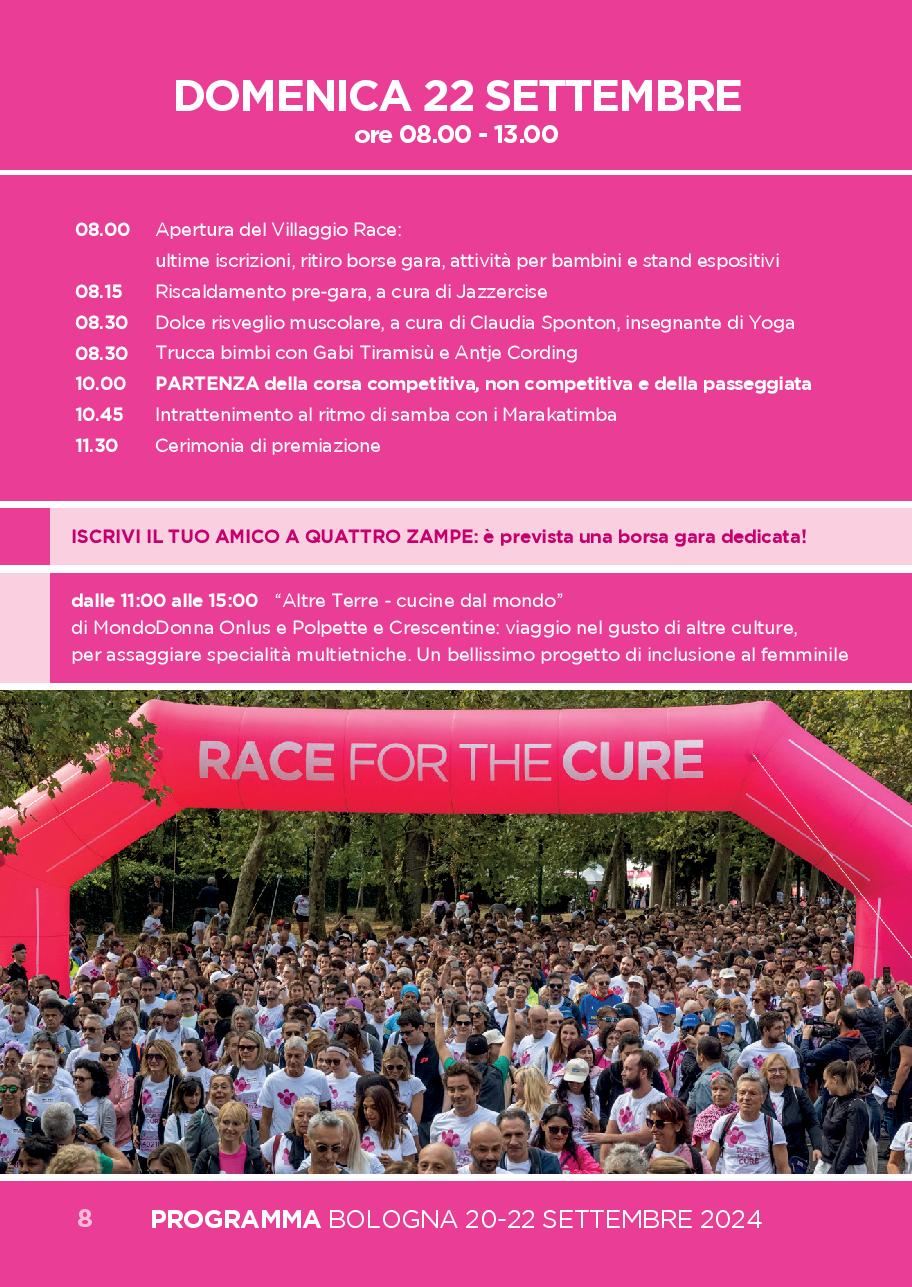Bologna, “Race for the Cure”. Villaggio aperto da venerdì 20 al 22 settembre con tante iniziative gratuite di salute, sport e benessere.