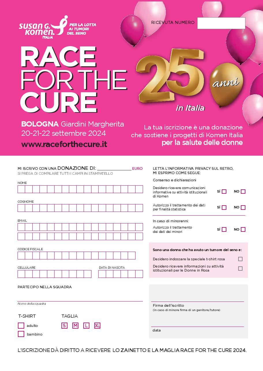 PUNTI DI ISCRIZIONE IN BOLOGNA E PROVINCIA: https://www.komen.it/race-2024/punti-iscrizione-rftc24-bologna/