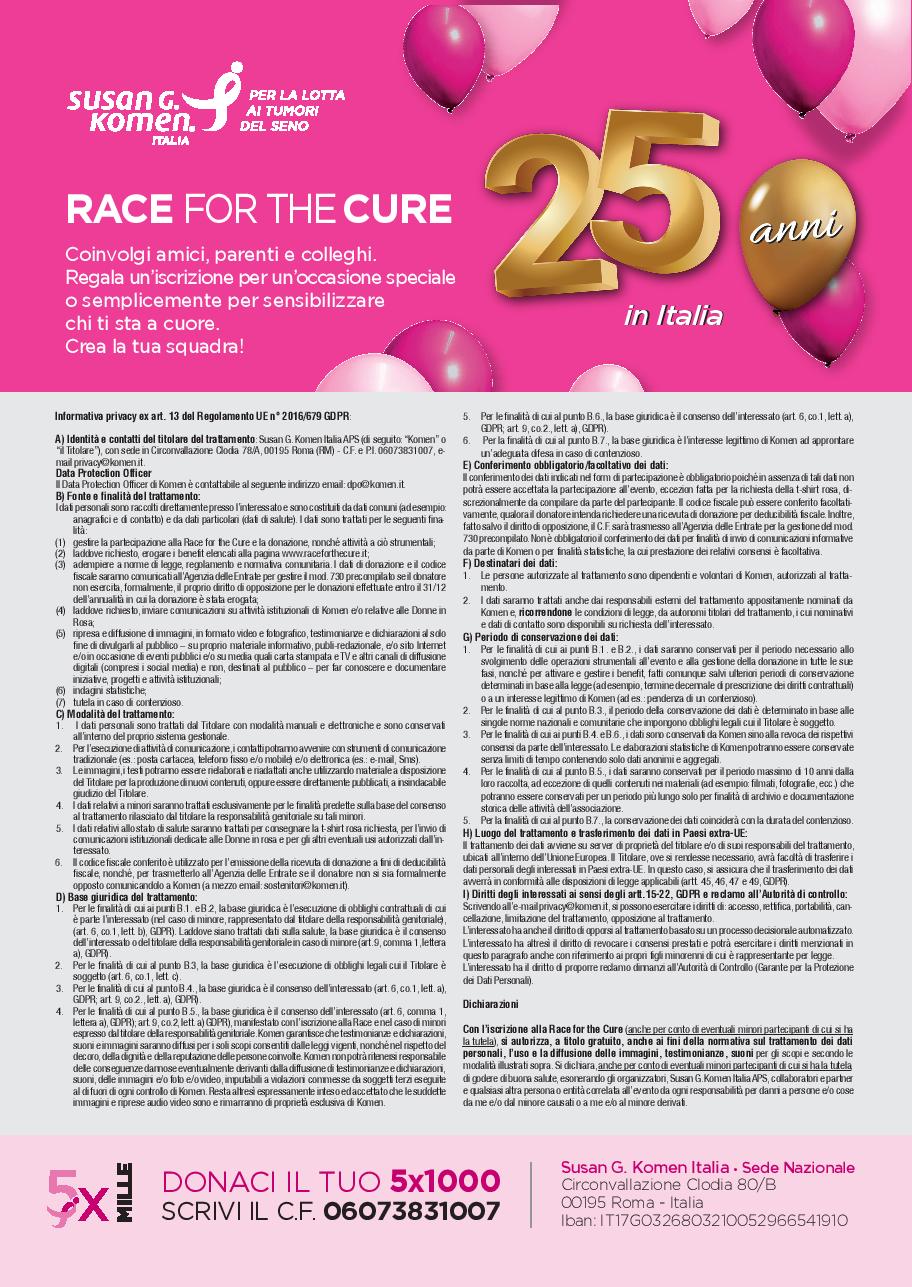ISCRIZIONI ALLA RACE: https://www.raceforthecure.it/race/iscrizione/40