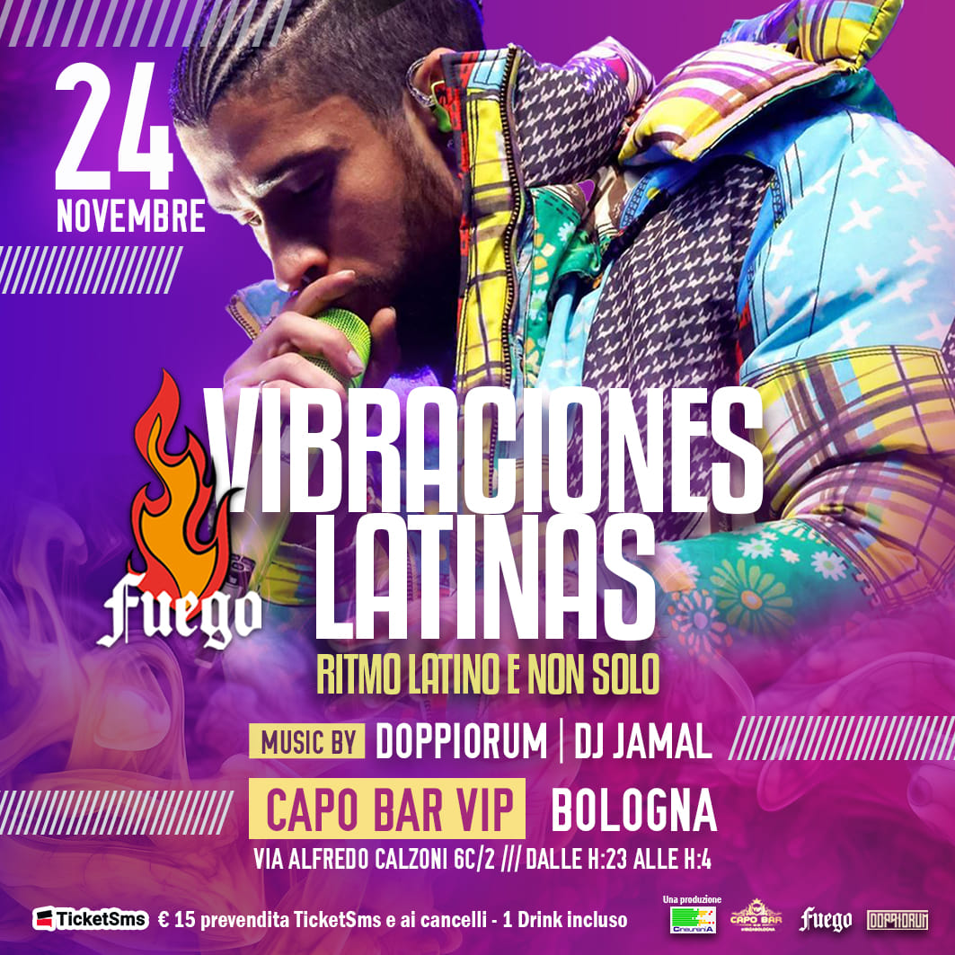 Bologna. Venerdì 24 novembre dalle ore 23,00 alle ore 04,00: “Fuego – vibraciones latinas”