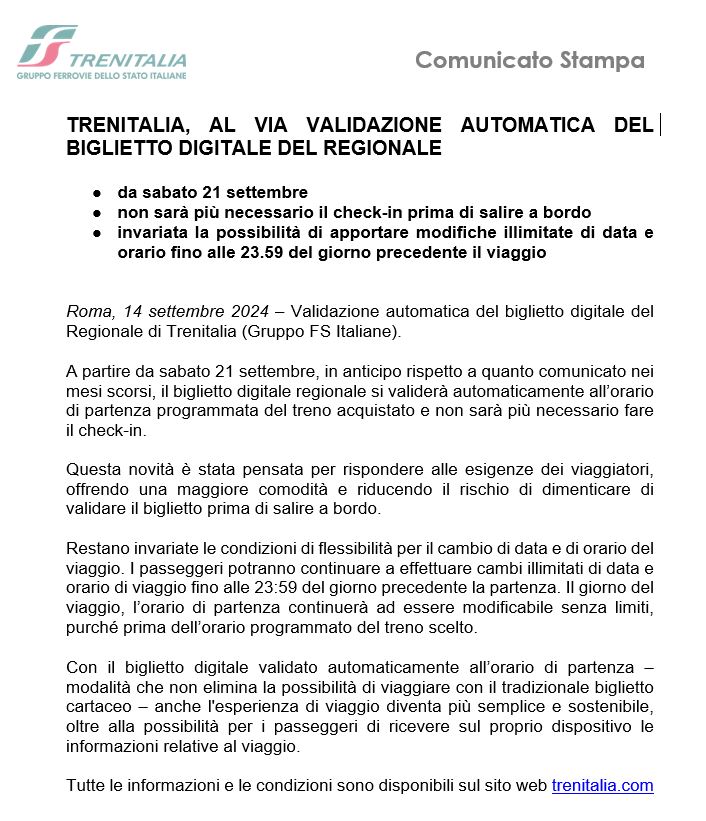 Grazie alla consueta e puntuale celerità delle comunicazioni del Comitato Pendolari Direttissima, alleghiamo il comunicato di Trenitalia relativo all’obbligo di validazione del biglietto prima di salire sul treno. Vedi allegato