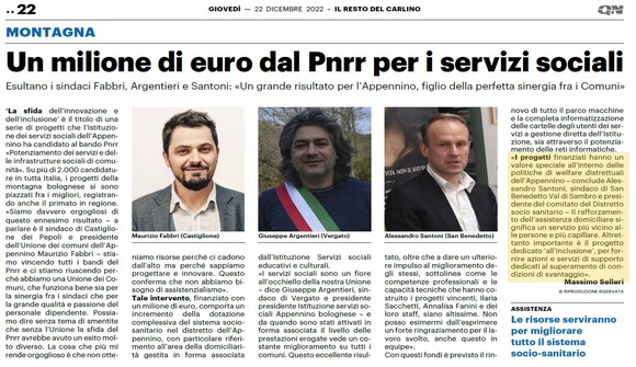 Il 2022 si chiude dunque con un altro obiettivo raggiunto da parte dell’Unione Appennino: dopo i risultati sul Pinqua, i Piani Urbani Integrati (Brasimone e Cartiera), Bando borghi (Campolo, Camugnano e Monteacuto delle Alpi), Green Communities e altre misure sempre a sostegno dei servizi sociali, possiamo dire che l’ppennino bolognese con il PNRR ha fatto un vero e proprio en plein.