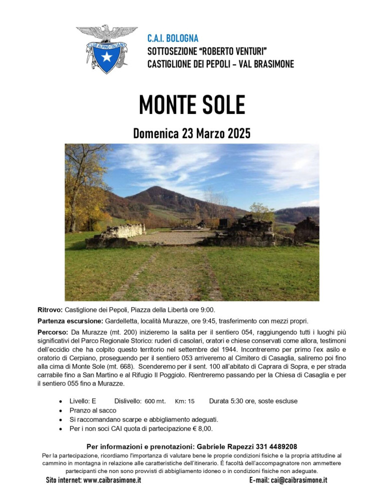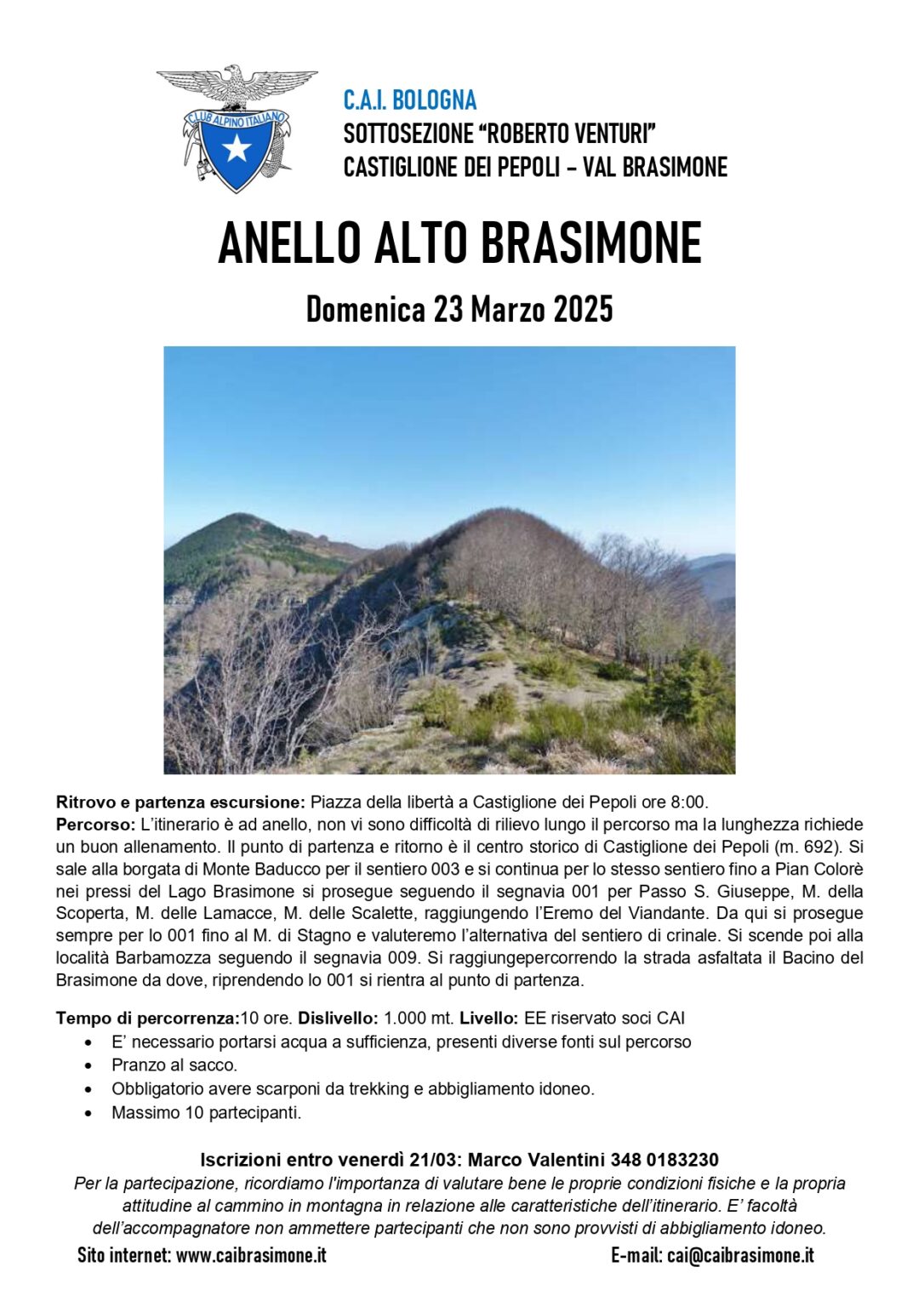 Domenica 23 marzo, il Cai di Castiglione dei Pepoli offre la scelta fra 2 escursioni: Anello Alto Brasimone e Monte Sole