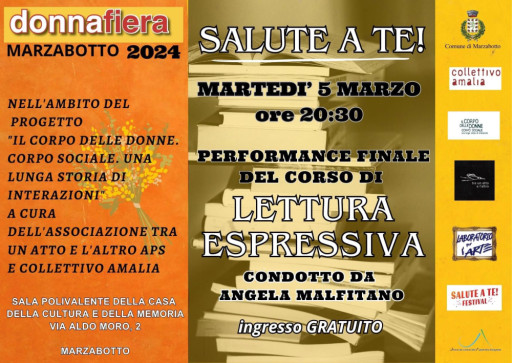 Ore 20:30 Saggio di fine corso “Salute a Te!” – Laboratorio di Lettura espressiva nell’ambito del progetto *Il Corpo delle Donne. Corpo sociale. Una lunga Storia di Interazioni* a cura dell’Associazione Tra un atto e l’altro APS e