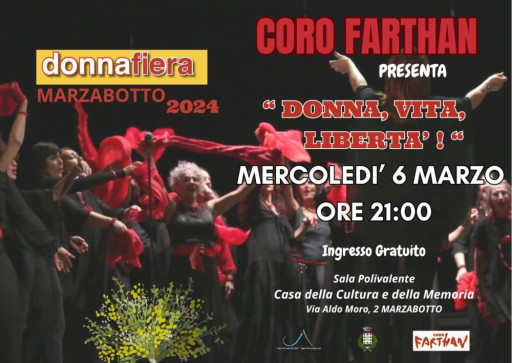Ore 21:00 Donna, Vita, Libertà! Concerto del Coro Farthan. Sarà presente Sohyla Arjmand dell’associazione Donne per Nasrin. – Sala Polivalente Casa della Cultura e della Memoria