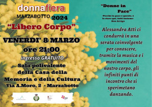 Ore 21:00 “Libero Corpo” Alessandra Atti ci condurrà in una serata coinvolgente per conoscere, tramite la musica e i movimenti del nostro corpo, gli infiniti punti di incontro che si sperimentano danzando.