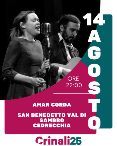 – Giovedì 14 agosto Cedrecchia, San Benedetto Val di Sambro Dalle 21:00 alle 23:30. Camminata in notturna da Madonna dei Fornelli a Cedrecchia con concerto di Amar Corda con Tosca Zampini e Tolga During