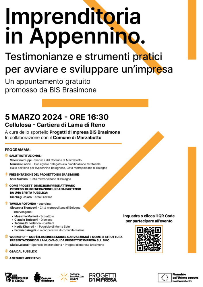L’incontro, rivolto in particolare ad aspiranti imprenditori e imprenditrici, studenti e studentesse, enti del terzo settore, è aperto a tutta la cittadinanza. Sarà anche occasione per presentare il progetto di rigenerazione della Cartiera, il progetto BIS Bologna Innovation Square Brasimone e gli sportelli che lo compongono.