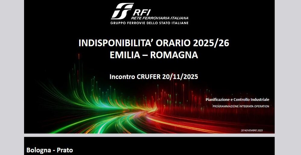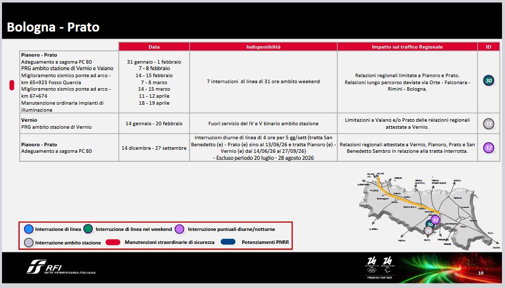 “Si allega la documentazione ricevuta da RFI relativamente alle future parziali chiusure della linea ferroviaria Bologna Prato (2025-2026).