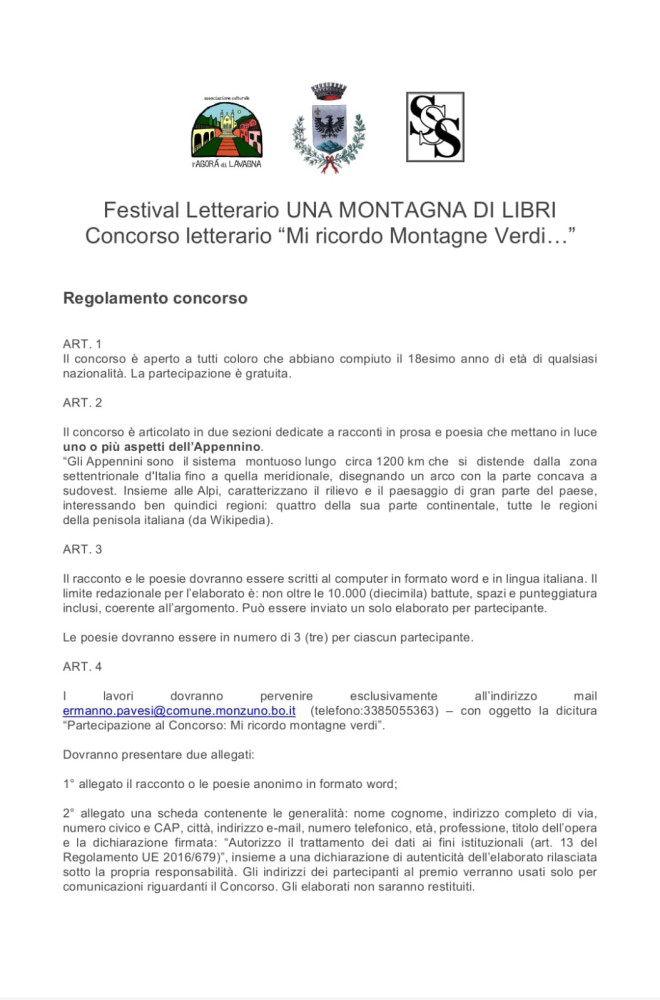 Sono aperte le iscrizioni al concorso letterario “Mi ricordo montagne verdi”. Regolamento in allegato
