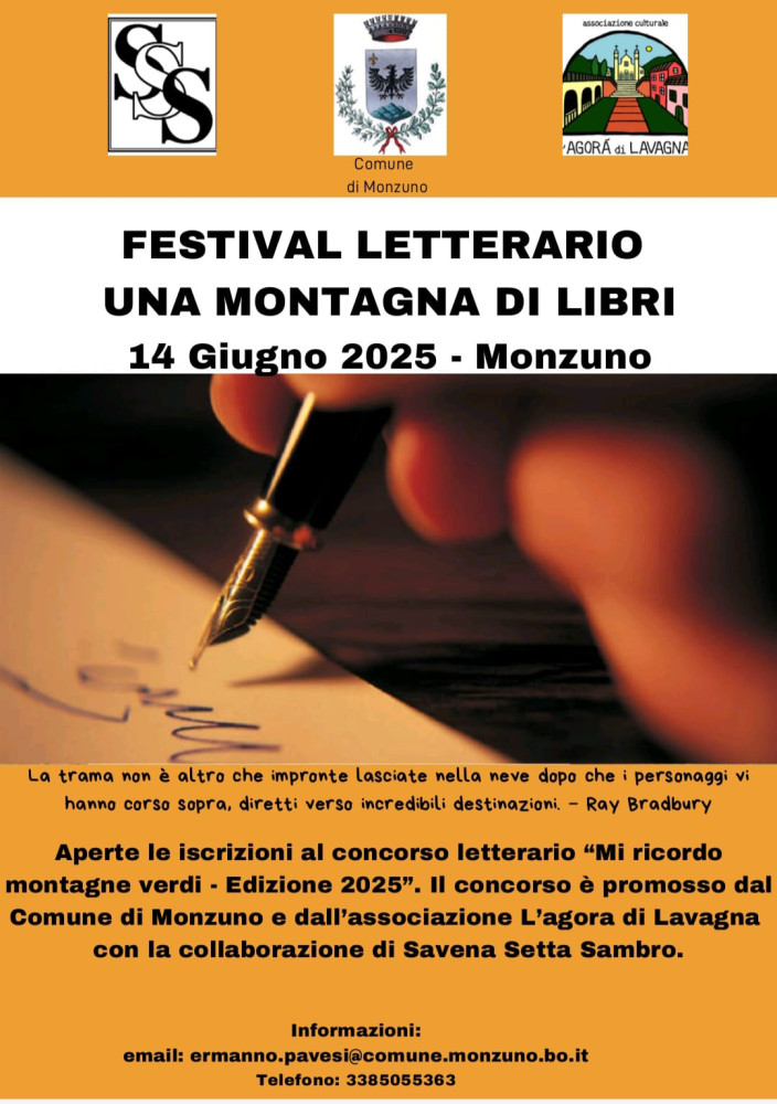 Sabato 14 giugno 2025 si terrà il 1° Festival letterario “Una Montagna di Libri”, al cui interno gli organizzatori hanno deciso d’inserire il concorso letterario “Mi ricordo montagne verdi”, il cui tema è l’Appennino.