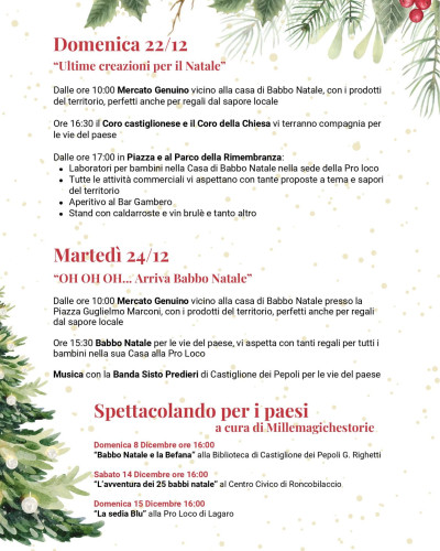 Il Natale è ancora più magico sull’Appennino bolognese: mercatini, concerti, spettacoli ed enogastronomia nella bianca cornice della nostra montagna innevata. Vedi le locandine degli eventi.