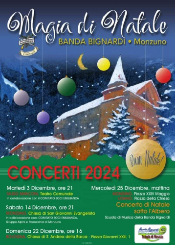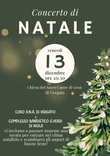 Si inizia con il concerto di Natale a Vergato venerdì 13 dicembre alle ore 20:30 presso la Chiesa del Sacro Cuore di Gesù con il Coro A.N.A. Di Vergato e il complesso bandistico Giuseppe Verdi di Riola.