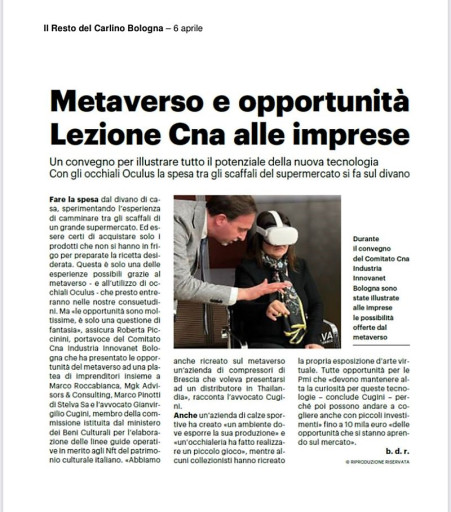Tante le opportunità per le imprese nel Metaverso. Se ne è parlato il 5 Aprile al convegno di Cna Bologna e Cna Industria Bologna in collaborazione con MGK Advisors & Consulting e STELVA Studio Elvetico Associato.