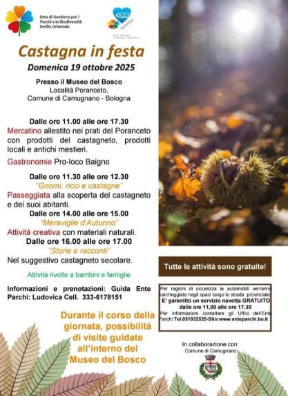 Nel suggestivo castagneto secolare, Mercatino, Gastronomia, Passseggiate, Attività ricreativa. Vedi programma completo in allegata locandina.