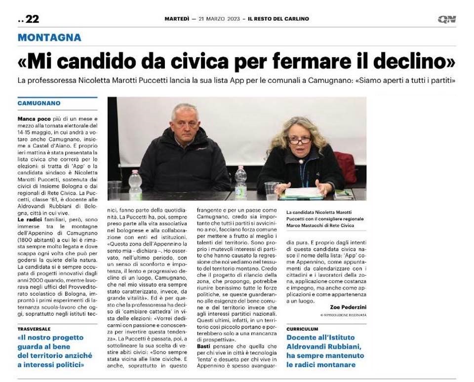 Oggi riportiamo un comunicato stampa della lista “App” e alcuni articoli del Resto del Carlino