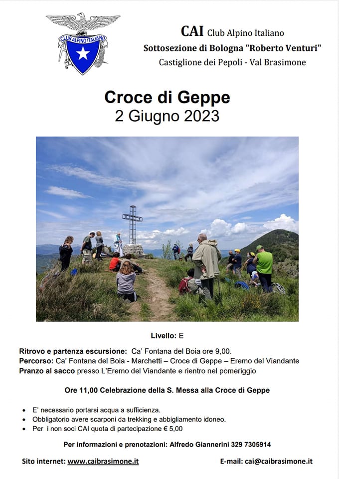 Castiglione dei Pepoli. Il Cai ci invita al trekking “Croce di Geppe” il 2 giugno 2023