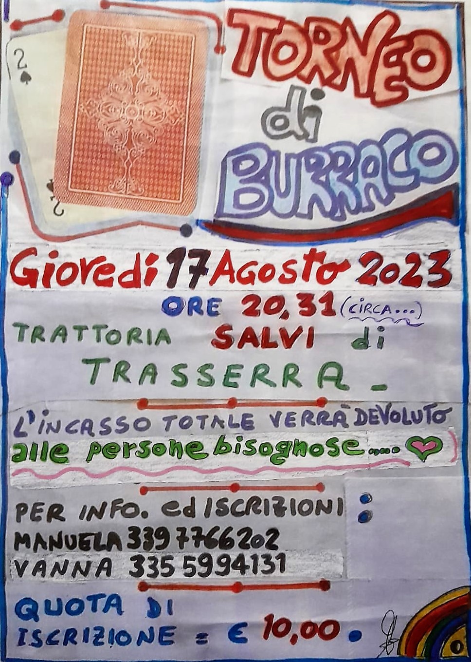 Trasserra di Camugnano. Giovedì sera 17 Agosto gara di Burraco presso la Trattoria Salvi