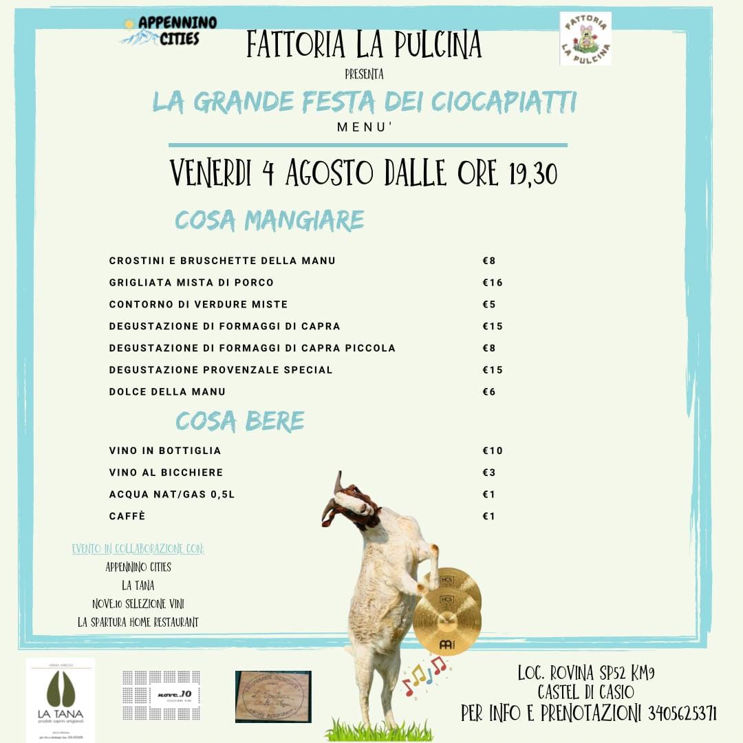 Alla Fattoria La Pulcina, Castel di Casio, venerdì 4 agosto cena e “Festa dei Cioccapiatti”