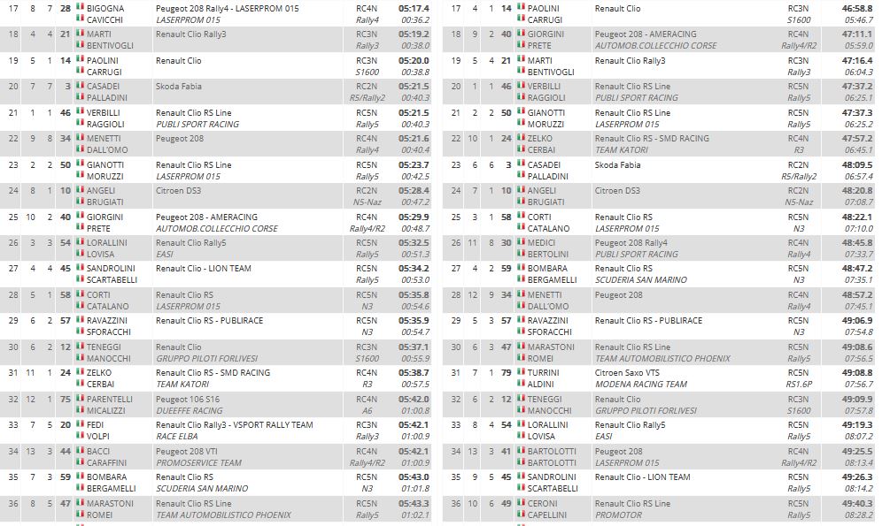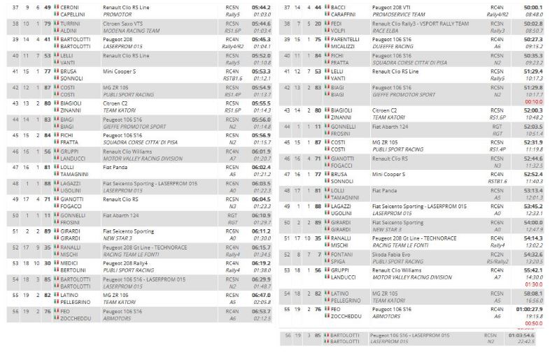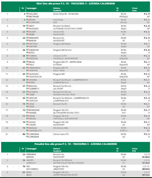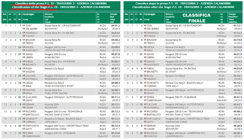Con questa vittoria, la terza stagionale, si sono aggiudicati la Coppa Rally di Zona 3. Al secondo posto i blasonati Pedersoli-Tomasi (Skoda), e terzi i locali Brusori-Tridici, anche loro su una Fabia.