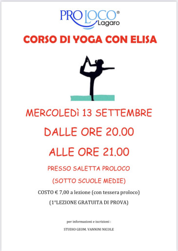 A Lagaro di Castiglione il 13 settembre inizio corso di Yoga. 1a lezione gratuita di prova