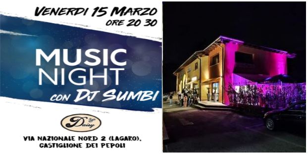Al Daisy Caffè di Lagaro di Castiglione dei Pepoli, venerdì 15 marzo “Music Night” con Dj Sumbi dalle ore 20.30