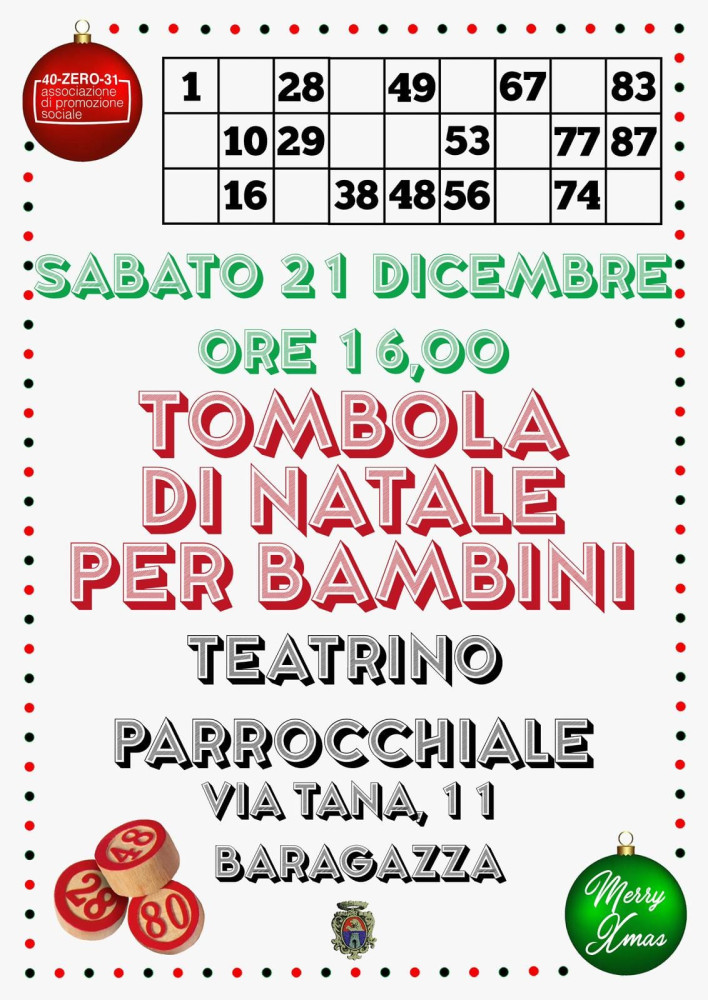Baragazza di Castiglione dei Pepoli. Tombola per bambini sabato 21 dicembre dalle ore 16.00 al Teatrino Parrocchiale