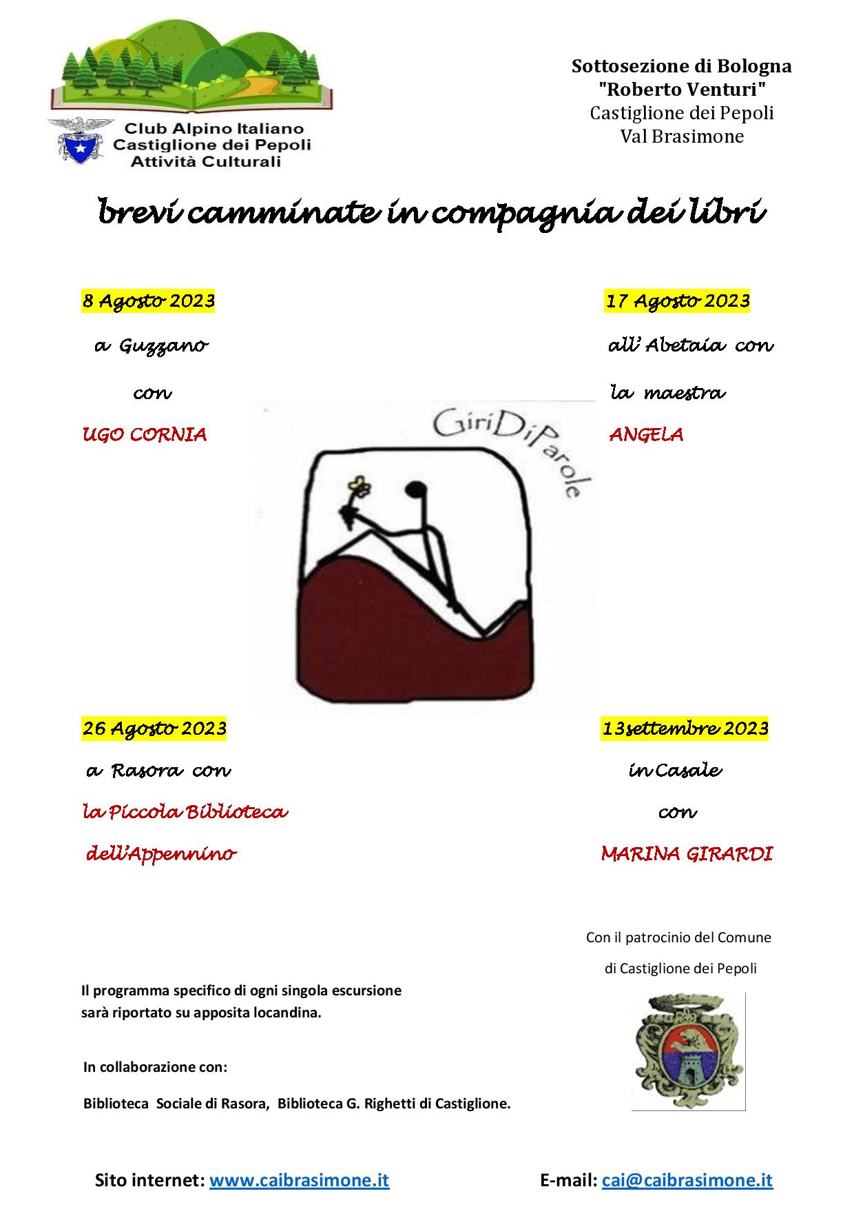 Cai Castiglione dei Pepoli, programmazione del mese di agosto 2023 “Giri di Parole”