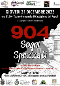 Castiglione dei Pepoli, 21 dicembre alle 21.00, al Teatro comunale avremo un viaggio teatrale “904 Sogni Spezzati”