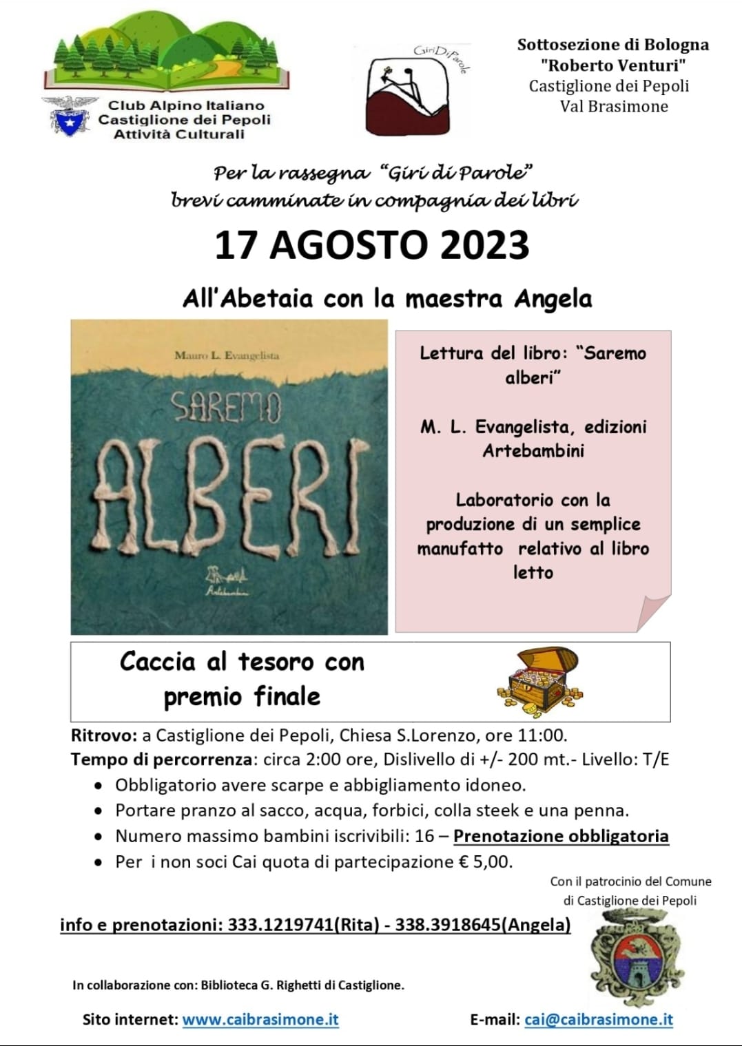 Castiglione dei Pepoli. “Brevi camminate in compagnia dei libri” Il Cai ci accompagna all’Abetaia di Castiglione dei Pepoli con la maestra Angela