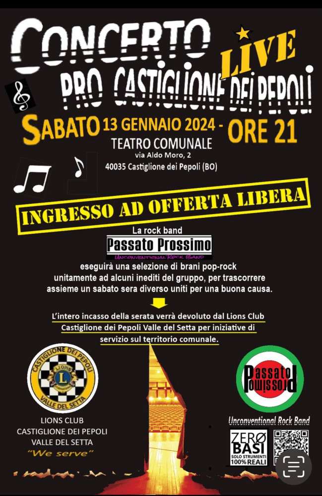 Castiglione dei Pepoli. Concerto al Teatro Comunale sabato 13 pro Castigline. Vedi locandina in allegato.