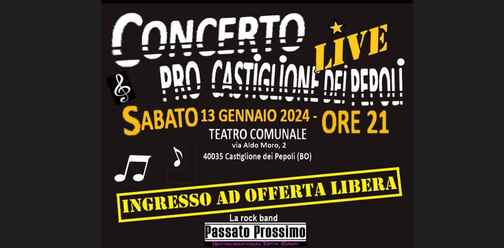 Castiglione dei Pepoli. Concerto al Teatro Comunale sabato 13 pro Castigline. Vedi locandina in allegato.