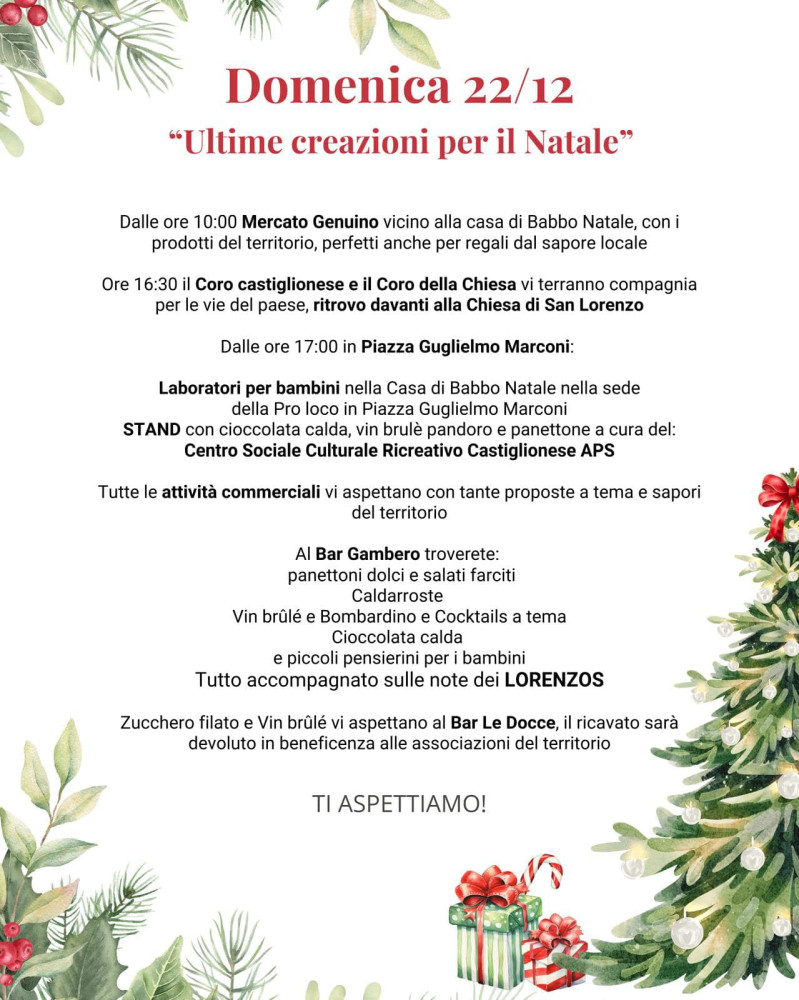 Castiglione dei Pepoli. Domenica 22 dicembre sarà una giornata molto intensa per le Feste Natalizie