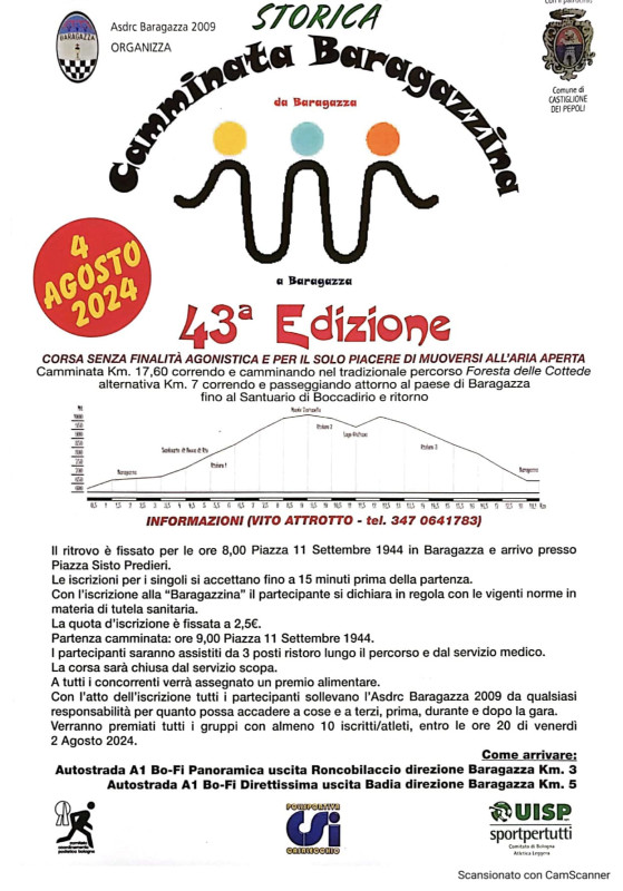 Baragazza – “Storica Camminata Bargazzina”. L’ Asdrc Baragazza 2009 organizza la storica “Camminata Bargazzina” giunta alla 43ª edizione!!