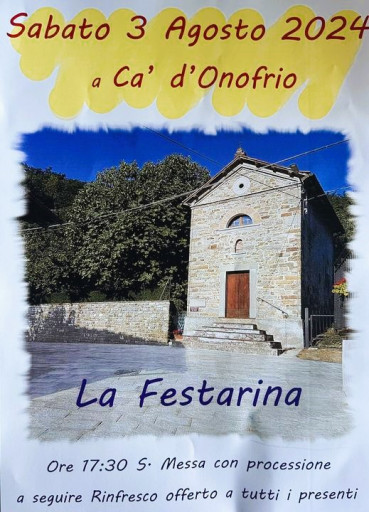 Castiglione dei Pepoli – A Ca’ d’Onofrio “La Festarina”. Ore 17:30 Santa Messa con processione e a seguire rinfresco offerto per tutti