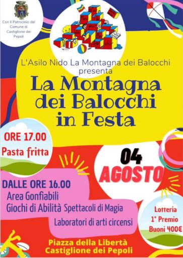 Castiglione dei Pepoli – “Montagna dei Balocchi in Festa”. L’asilo la Montagna dei Balocchi organizza Domenica 4 Agosto la festa interamente dedicata ai bambini.