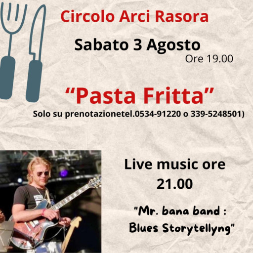 Rasora – Dalle 19.00 Pasta Fritta e alle 21.00 live music con il mitico Banana e la sua Band! Solo su prenotazione!!