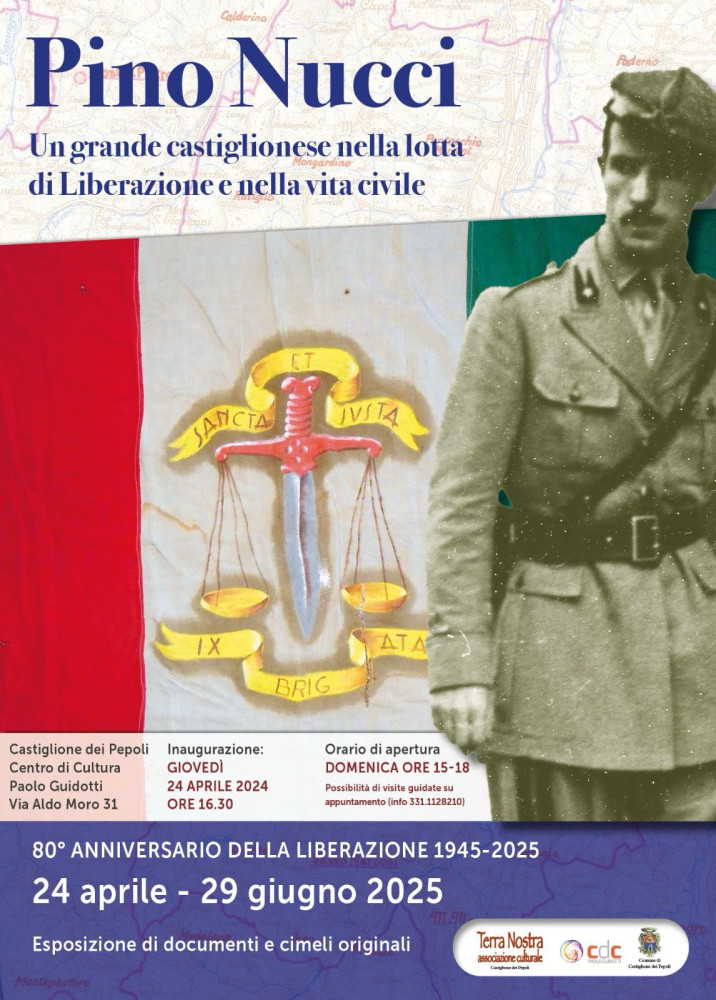 Giovedì 24 aprile presso il Centro di Cultura “Gianfranco Righetti” alle ore 16:30 “Cerimonia d’Apertura della mostra” che racconterà le gesta, l’impegno e la vita di Pino Nucci, grande e illustre castiglionese che ha speso la propria vita a servizio degli altri, della scienza e della cultura mantenendo forte il legame con le proprie radici e il proprio paese.