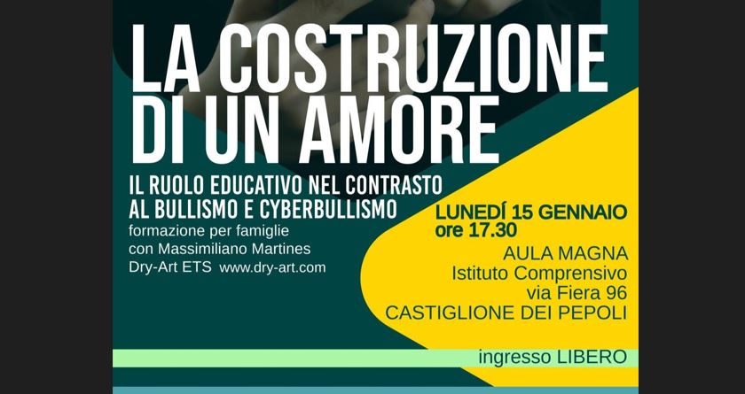 Incontro a Castiglione dei Pepoli: “La costruzione di un amore. Il ruolo educativo nel contrasto al bullismo e cyberbullismo”