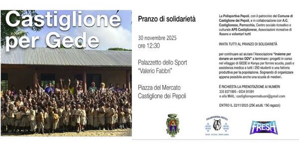 Castiglione dei Pepoli. Pranzo di Solidarietà “ Castiglione per Gede”, domenica 30 novembre 2025, alle 12:30