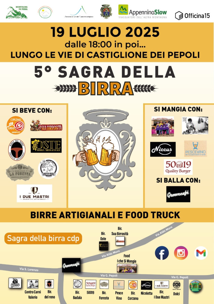 Castiglione dei Pepoli. Sabato 19 luglio dalle ore 18.00, 5ª edizione della favolosa Sagra della Birra