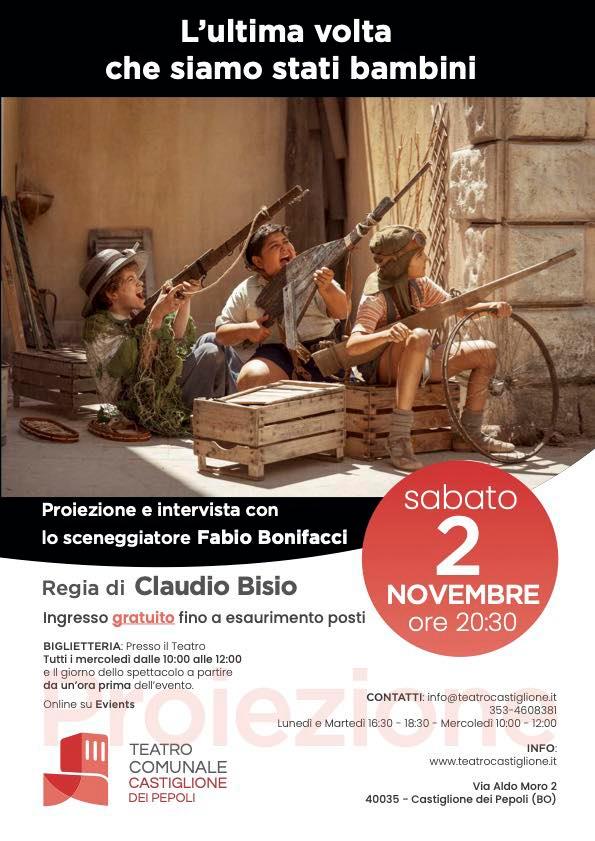 Castiglione dei Pepoli. Sabato 2 novembre al Teatro Comunale alle ore 20.30 proiezione film “L’ultima volta che siamo stati bambini”