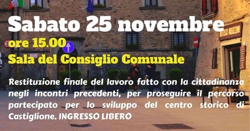 si terrà il terzo incontro inerente al percorso partecipato per lo sviluppo del centro storico di Castiglione.
