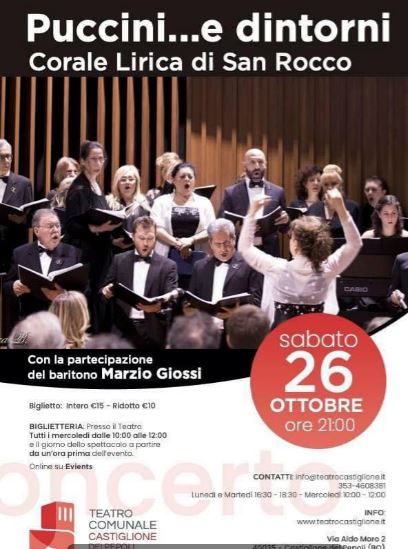Castiglione dei Pepoli. Sabato 26 ottobre al Teatro Comunale alle ore 21:00 “Puccini … e dintorni”- Corale Lirica San Rocco”